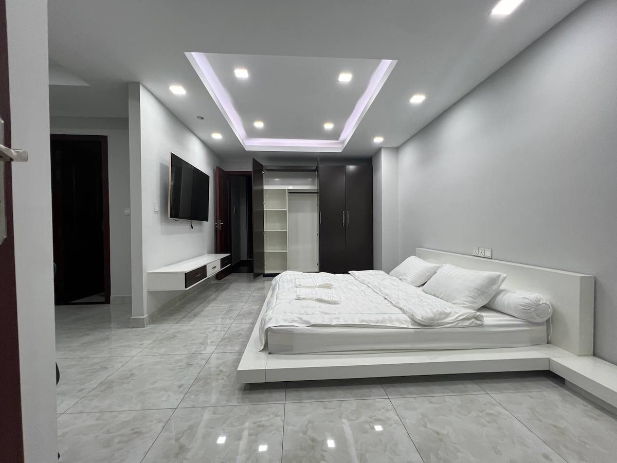 Esta propiedad especial se encuentra en una ubicación perfecta en el centro de la ciudad. Frente al apartamento hay un gran centro comercial y el hotel de cinco estrellas Sofitel, que es conveniente para que planifiques tu visita. - Equipado con televisor inteligente Samsung. - Equipado con cocina , nevera y hervidor de agua. - Equipado con lavadora y percha para ropa. - El bar más alto del cielo de Johnom Penh: Celeste y la piscina infinita de la azotea con vistas al río Mekong. - Equipado con gimnasio. - Se proporcionan adyuvantes Equipada con artículos de aseo básicos