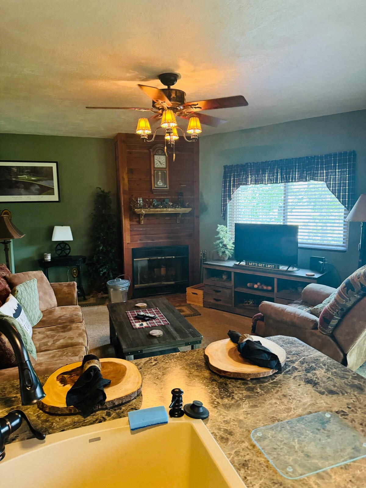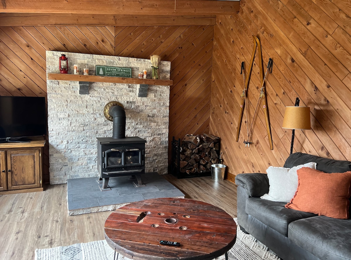 ¡No busques más la escapada RELAJANTE perfecta para cualquier ocasión! Nuestra casa tiene capacidad para 6 adultos cómodamente con 2 dormitorios, una sala de juegos completamente *renovada* con sofá cama tamaño queen y 2 baños completos. ¡Despiértate y disfruta de una taza de café caliente acurrucado junto a la chimenea o en nuestra terraza extendida, y disfruta de las espectaculares vistas al bosque! Nuestra casa es perfecta para todas las estaciones e incluye una piscina comunitaria, cancha de tenis y servicio de transporte de cortesía que te lleva a cualquier lugar del centro vacaciones Seven Springs.
