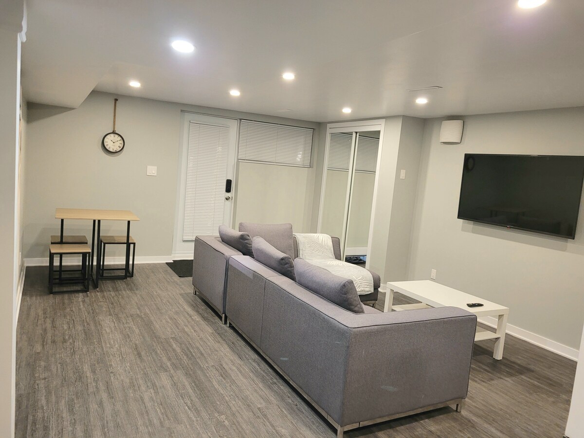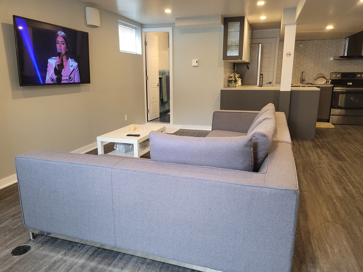 Escape to Montreal to a stylish suite! Nothing in pics here is shared with others 🔐 + Your private entrance🚪 Relax in the spacious living room on smart big-screen 📺 Sleep in a comfortable queen bed 🛏️ All nestled in basement-suite in a quiet street 💤 By car 🚙 15 min to downtown Montréal 6 min to REM Panama station and Mall Champlain 5 min to DIX30 Mall By foot🚶🏻🚶🏻♀️ 12 min Grocery Store Free street parking 🅿️ Washer/dryer included 🧺 Diverse dining 🍽️ options mins away. Book your retreat today : )