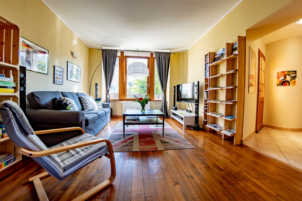 Aprovecharas un 40m2 totalmente equipado con grandes espacios luminosos. Esta al lado de la estacion de tren y del centro, a par de minuto del parque de los exposiciones, hopital o puerto en coche o en bus. El piso es muy tranquilo. Una habitacion con cama doble, un sofa convertible para una persona en el salon, un cama bebe. Se puede aparcar abajo del piso de forma gratis!