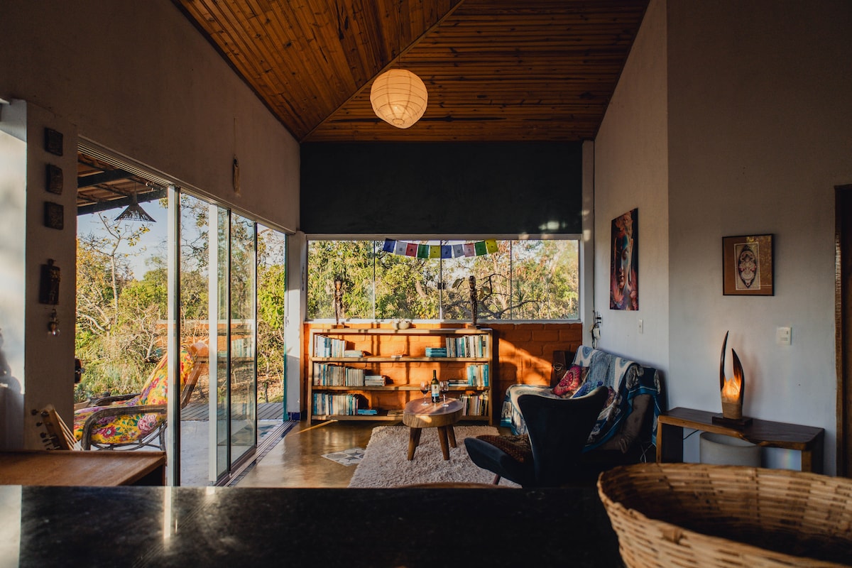 Bienvenido a su escapada a la naturaleza en el corazón de Cerrado, un acogedor albergue con energía solar con acceso a exclusivas rutas de senderismo y cascadas. Si te gustan las mañanas tranquilas, los cielos infinitos, las noches llenas de estrellas y la presencia de la naturaleza real, este es tu lugar. Disfrutarás de: - un refugio tranquilo lejos del ruido de la ciudad - senderos, vistas impresionantes y naturaleza a tu alrededor - espacios cómodos diseñados para mañanas lentas y descanso profundo - Un ambiente tranquilo perfecto para parejas, grupos pequeños o viajeros solitarios.