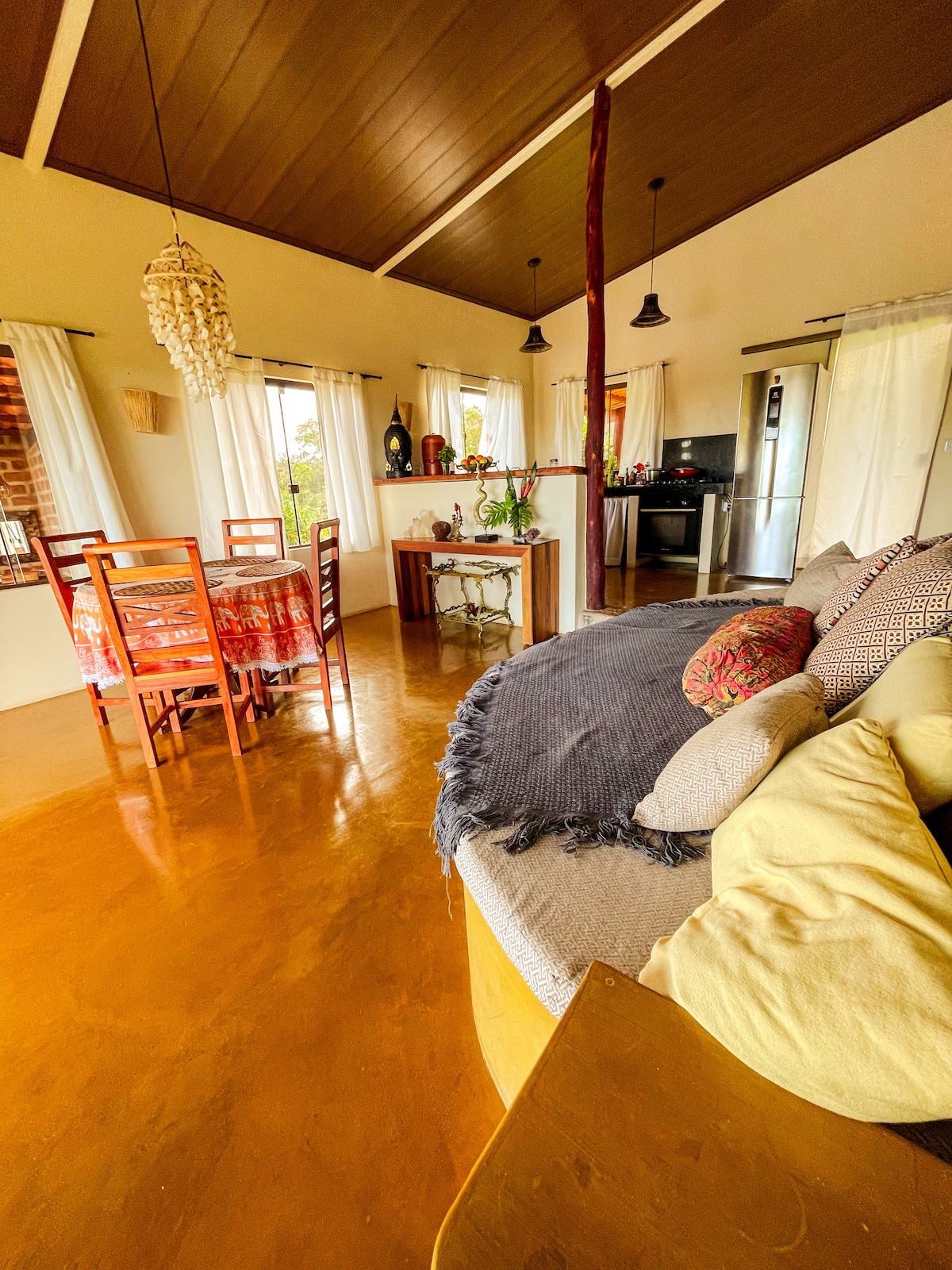 Te damos la bienvenida a esta joya oculta en uno de los rincones más bonitos de la ciudad de Alto Paraíso. Aquí experimentarás una inmersión en el Cerrado como nunca te habías imaginado. Rodeado de naturaleza, con vistas a uno de los valles de la Chapada que te sorprenderá desde el amanecer hasta el despertar de la luna al anochecer. Las estrellas por la noche, los guacamayos al atardecer y los tucanes que vuelan sobre la propiedad serán puntos altos durante tu estancia aquí. * Casa privada p/ hasta 4 P *Piscina natural en el condominio