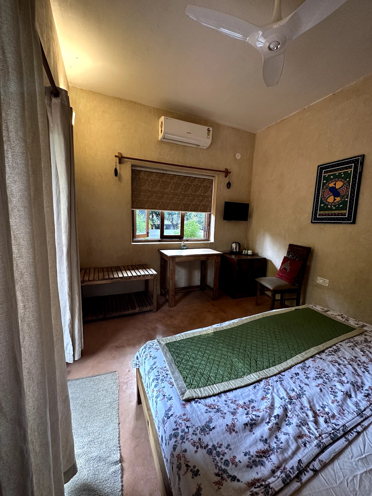 Bienvenido a Ancessaao's 🏡🌴- tu auténtica escapada goana en Assagao, a solo 10 minutos de Vagator y Anjuna Diseñada para una vida lenta y escapadas íntimas, esta cabaña combina encanto con comodidades modernas, perfecta para parejas o viajeros solitarios que buscan relajación y privacidad. Características principales Aire acondicionado y wifi ❄️| TV y mininevera 🍺| Terraza privada e interiores iluminados por el sol 🛏️| Cocina pequeña (no cocina)| Bolsitas de té, café y leche ☕| Respaldo de energía ⚡| Lavandería disponible| Propiedad cerrada 🚪| Estacionamiento interior 🅿️