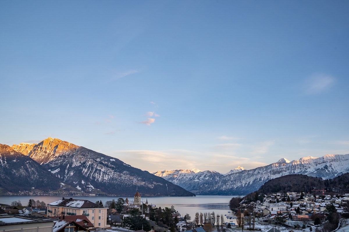 Descubre la comodidad espaciosa en nuestro apartamento de 85m ² en Thun. Cuenta con 2 dormitorios con camas dobles grandes, un moderno baño con ducha y artículos de aseo gratuitos, y una cocina totalmente equipada con estufa, lavavajillas y cafetera. Disfruta de las vistas a la montaña y la relajación en el balcón, además de comodidades como lavadora/secadora, TV de pantalla plana por cable, insonorización y wifi gratuito. Este refugio para no fumadores es perfecto para una estadía inolvidable.