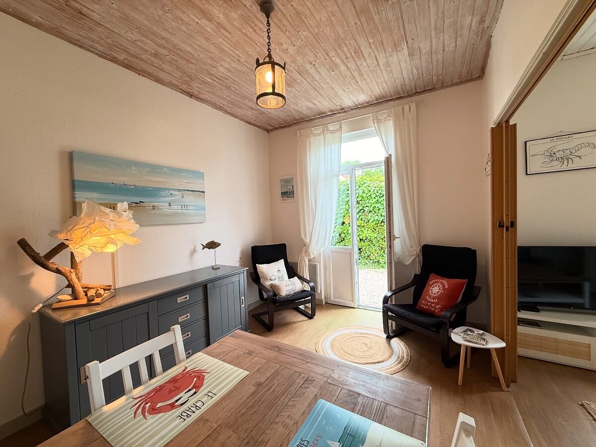 A 300 m de la playa, a 150 m del puerto y de la calle comercial, la casa está idealmente situada, ya sea a pie o en bicicleta. La casa, recientemente reformada, cuenta con un gran jardín cerrado. La casa se compone de: En la planta baja, una gran sala de estar (45 m²) con una cocina abierta, que da a una hermosa terraza permite disfrutar de la tranquilidad y la luz. (1 aseo) Arriba, 2 habitaciones y un baño con inodoro. La casa está muy bien equipada y tiene un amplio aparcamiento.