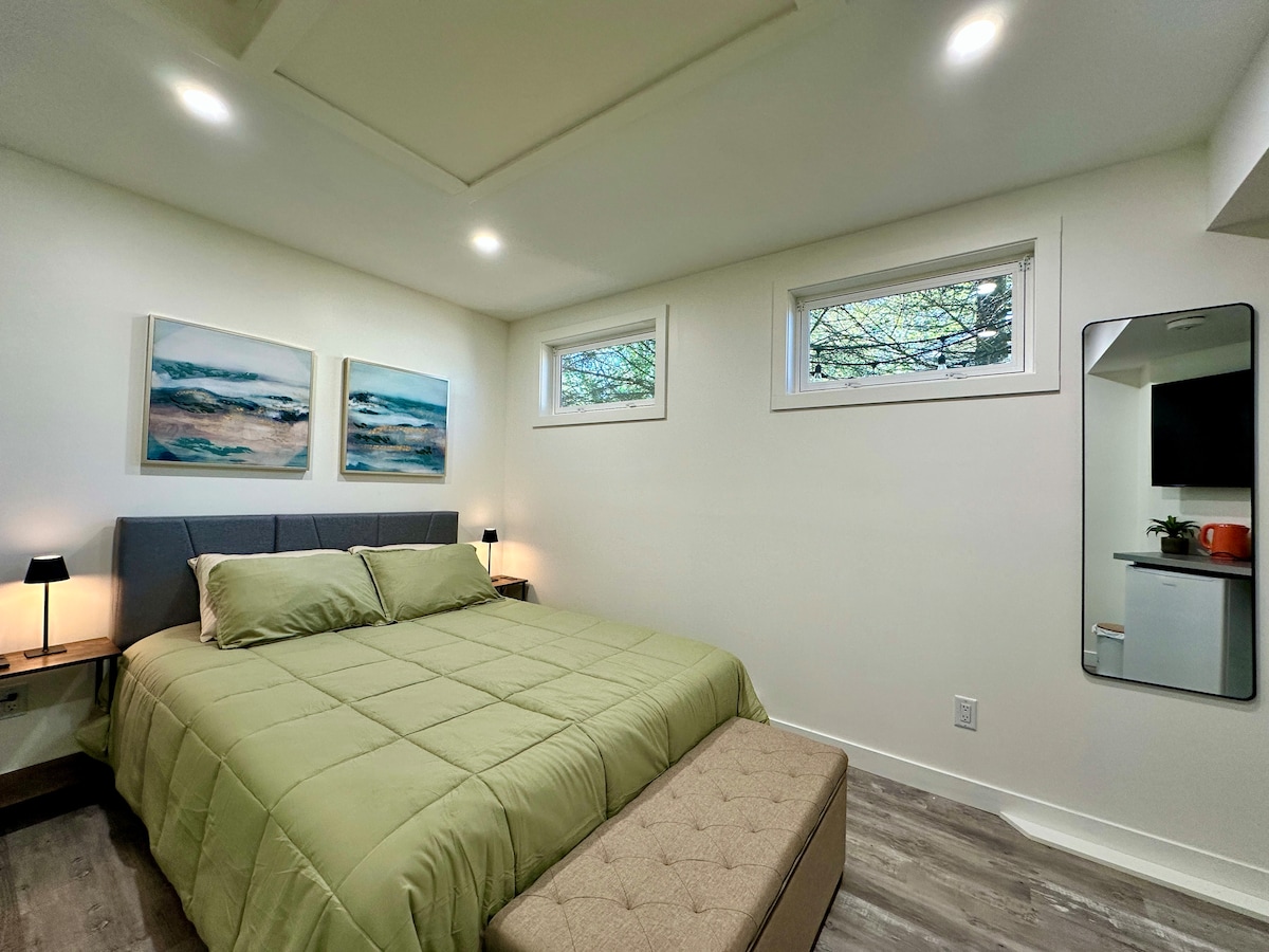 Licencia: STR2025-9250261010 Te damos la bienvenida a nuestra luminosa y limpia suite de un dormitorio ideal para solteros, parejas o familias pequeñas. A poca distancia a pie del Bruce Trail, a poca distancia en auto de parques, playas y lagos; y una buena base de operaciones para explorar la península de Bruce y Tobermory. Una cómoda cama tamaño queen en el dormitorio con una selección de ropa de cama y almohadas. Cocina totalmente equipada, baño moderno, suite completa de TV en streaming con Internet de alta velocidad. Zona residencial en el lado oeste de la ciudad.
