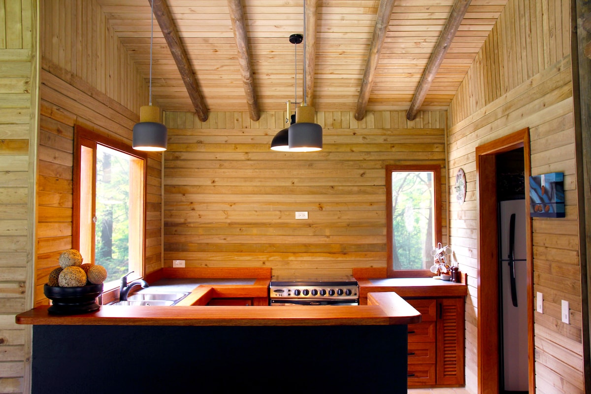 Escápate a una cabaña elevada entre los árboles, donde la arquitectura se fusiona con la naturaleza. Fácil acceso en auto. Terraza con vista impresionante, tina caliente, cocina equipada, parrilla BBQ, chiminea y fogatero exterior iluminado para que vivas el bosque y despiertes rodeado de tranquilidad. Somos pet friendly, la tarifa por mascota es de $30. Llegas sin auto? Podemos ayudarte con la renta de un vehículo o coordinar tu traslado desde el aeropuerto a una tarifa preferencial.t