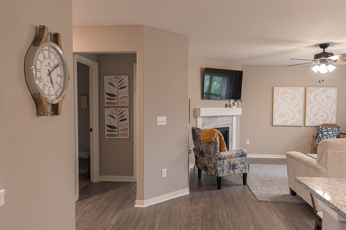 Ubicada en un barrio familiar, esta unidad inferior con entrada privada ofrece una estancia tranquila con vecinos amigables. Se proporciona wifi rápido y televisión con una suscripción a Peacock. Situado cerca de la autopista 20, ofrece fácil acceso al aeropuerto y a las autopistas 39 y 90. La casa está a 4 minutos de Atwood Park, que ofrece millas de senderismo panorámico y un aviario de aves rescatadas. A 13 minutos en coche se encuentra el centro de Rockford con numerosas tiendas, museos, restaurantes y vistas al río Rock.