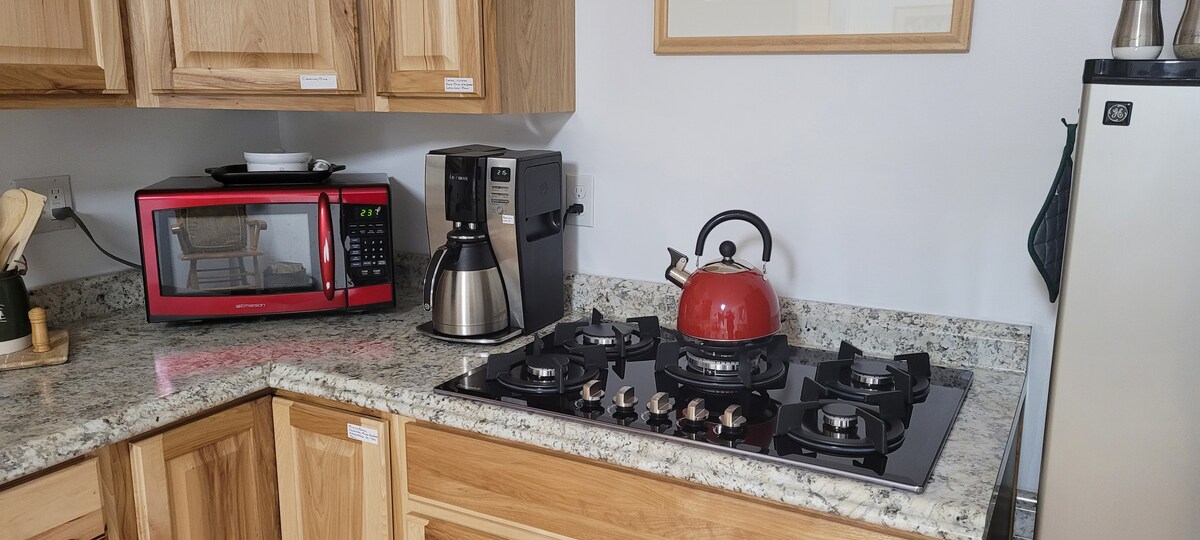 Departamento privado de un dormitorio con vistas al río Snake. Zona semirrural justo al otro lado del río desde Lewiston, Id. No hay escalones y tenemos un amplio estacionamiento en la calle. A solo 10 minutos del aeropuerto de Lewiston. El apartamento. cuenta con una pequeña sala de estar con un sillón reclinable doble, una pequeña mesa de comedor con 2 sillas, una pequeña cocina con nevera, fregadero y microondas. No hay estufa/horno, pero tenemos una placa calefactora dbl, horno tostador y muchos aparatos de cocina. Dormitorio con cama queen, baño con ducha.