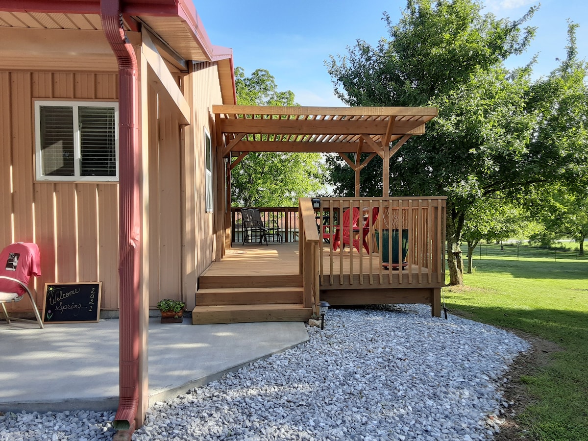 La elegancia moderna te espera en tu estadía en el increíble Branson, Misuri. Serendipity King Bed Suite se encuentra en un barrio rural ubicado lejos de la conmoción de la autopista 76, pero fácilmente accesible a todas las increíbles atracciones de Branson. Estamos a unos 10-15 minutos de la concurrida "franja" de Branson, Table Rock Lake, SDC, el centro histórico de Branson o Branson Landing. Junto con tu pintoresca y hermosa habitación llena de comodidades, tienes una acogedora terraza abrazada por flores para ayudarte a relajarte y disfrutar de la experiencia Ozark.