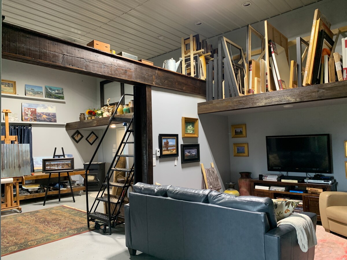 Este espacio elegante y acogedor liberará tu imaginación. La mezcla única de moderno y rústico mezcla bellamente en este Barndominium totalmente equipado. El patio trasero privado ofrece vistas increíbles y no te puedes perder las puestas de sol. Cocina en la cocina bien surtida. Ponte cómodo para ver una película en el televisor inteligente. ¡El dormitorio tamaño king es amplio y ofrece una noche increíble de sueño con un colchón favorito de los huéspedes! Hay una cama individual y sofás en la sala de estar principal para más de 2 huéspedes.