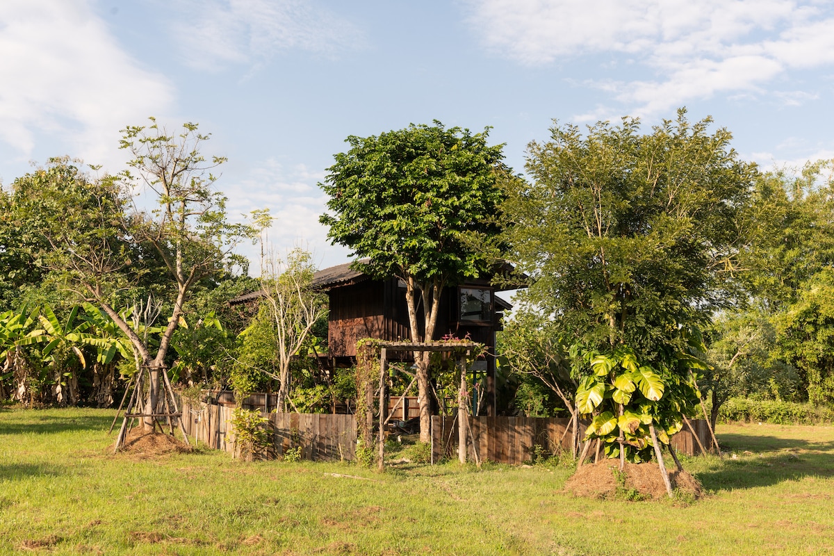 🌿 Cabaña de madera pequeña de dos pisos rodeada de árboles frutales. Escondida junto a nuestro estudio de arte, la cocina en la planta baja ofrece un espacio para cocinar. Subir las escaleras revela una conexión natural con el balcón abierto. Con un dormitorio que se abre al viento, mantente cerca del abrazo del bosque durante todo el día. Al atardecer, cuando el clima es fresco, nos sentamos alrededor de la hoguera, dejamos que nuestros corazones sean cálidos. Escucha las estrellas eternas, bendice la energía de la Madre Naturaleza (Pachamama) y Doi Luang ChiangDao
