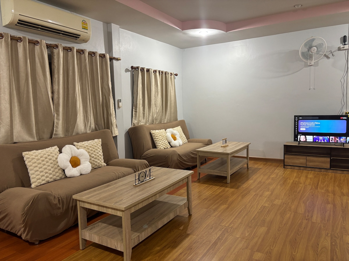 Una casa tranquila ubicada en Udonthani con 3 dormitorios, 2 baños, 1 comedor. Equipado con instalaciones necesarias; wifi gratuito, lavadora, nevera, hervidor de agua, microondas, platos y cubiertos, y bicicletas. Todos son de forma gratuita. Puedes pasar tus días leyendo, durmiendo la siesta o haciendo tu trabajo. Es muy tranquilo y privado. A solo 5-10 minutos a pie de 7-eleven y muchas tiendas de comida locales. La entrega de alimentos en línea está disponible en esta zona. Disfrutemos de tus días con nosotros.