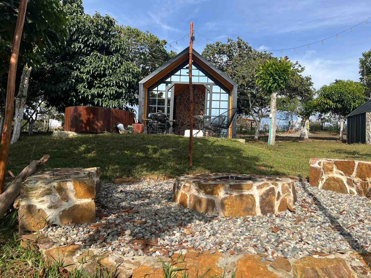 What better way to immerse yourself in the landscape and adventure of San Gil than in a stylish tiny house with amazing mountain views. Enjoy a unique and cozy experience with all the luxury's and comforts of a modern home with the "glamping" experience of being surrounded by nature and Colombia's greatest agriculture...Coffee! This spot is private and off the beaten trail with easy access to all the adventure tours of San Gil and the town of Barichara.