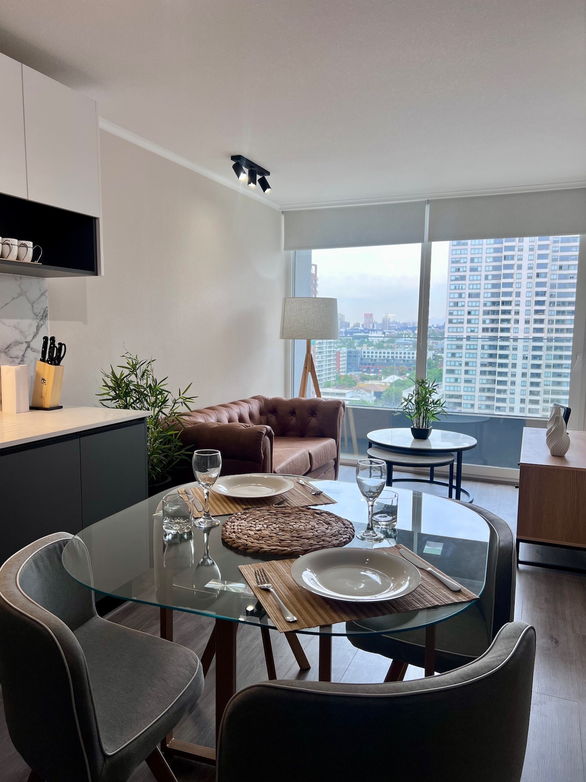 JC APART HOTEL Disfruta de una estadía cómoda en el corazón de Providencia. Moderno departamento de dos habitaciones con cocina equipada y wifi gratuito. Incluye limpieza diaria acotada (sin lavado de platos). Estacionamiento disponible y mascotas bienvenidas con un pequeño fee. Ideal para parejas, familias o viajeros por trabajo que buscan confort y buena ubicación.