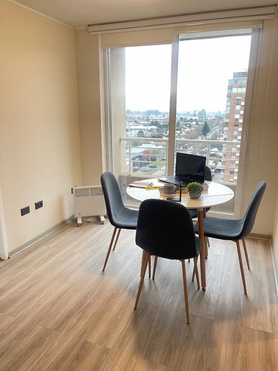 Apartamento estudio, ideal para viajeros y profesionales que buscan una experiencia única en la ciudad. Este estudio se encuentra ubicado a una cuadra del mall, plaza de armas, mercado y servicios públicos. TE OFRECEMOS Ubicación en el corazón de Chillán. Internet. TV cable. Estacionamiento. Balcón amplio, para disfrutar del aire libre. Te brindamos sábanas y toallas limpias, Netflix, Prime video, etc. Ubicado en 4to piso.
