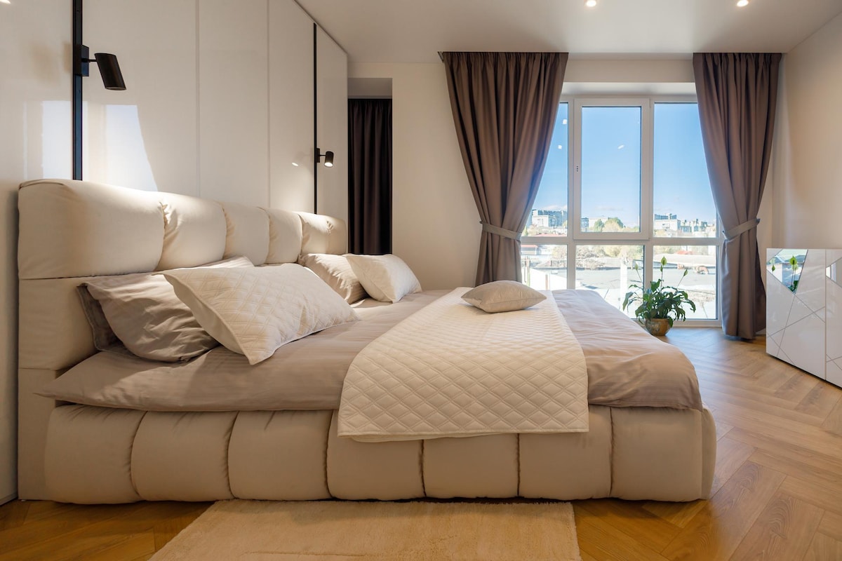 Bienvenido a GrandStay Apartments, el pináculo del lujo en el corazón ultracentral de Chișinău. Este apartamento de alta gama ofrece paredes de vidrio del piso al techo con vistas panorámicas del Parque de la Catedral, tres balcones privados y muebles de diseño. Disfruta de una cama tamaño king de primera calidad, una impresionante bañera en el dormitorio con vistas al parque y un baño elegante. Un gimnasio privado con terraza con vistas a la ciudad y un conserje dedicado completan esta experiencia exclusiva.