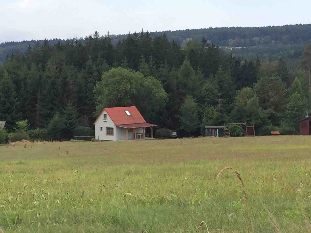 La cabaña está en un lugar solitario cerca del bosque, cerca de las ruinas del castillo de Lichnice y el estanque de Lovětín. Si busca tranquilidad, ¡este es el lugar para usted! ¡Recomiendo desayunar en la terraza con vistas a la iglesia de Míčov! Por la noche se pueden asar salchichas en la hoguera. Para los niños hay un tobogán, columpios y un arenero. Las bicicletas se pueden guardar en el garaje.