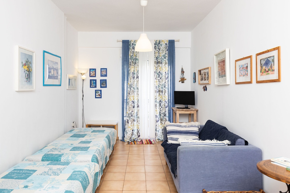El apartamento está situado en el primer piso de una casa unifamiliar privada al comienzo del casco antiguo, en el centro con fantásticas vistas a Kamares. Completamente renovado en 2020 con decoración moderna - equipado con cocina/baño, aire acondicionado, lavadora y un gran balcón que hará que su estancia sea inolvidable.Su ubicación única es ideal para recorrer los lugares de interés de la ciudad a pie. En la zona encontrarás pintorescas cafeterías, bares, restaurantes, supermercados y un parque infantil. ¡Estaremos encantados de hospedarle!