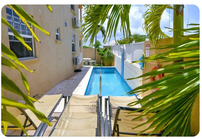 La única casa de ladrillo en la playa de Carlisle Bay ofrece dos apartamentos separados lujosamente amueblados. La descrita aquí, "Twin Palm", está ubicada en la planta baja y ofrece una magnífica vista sobre el agua turquesa y las arenas coralinas. Cuando abras LA puerta del jardín, ¡estarás justo EN LA playa! Los alrededores en buen estado ofrecen muchas tiendas y posibilidades de tiempo libre. En solo diez minutos se llega al centro de la ciudad caminando. Zona de estacionamiento junto a la casa. Huéspedes máx.: 4.