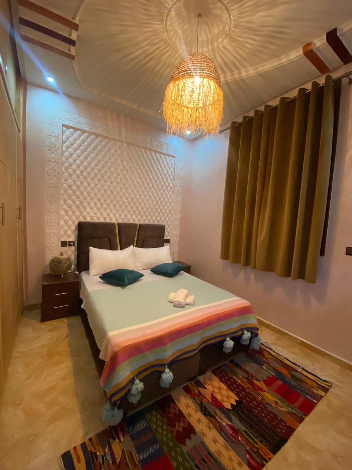 Alójese en Douira, un tranquilo pueblo de pescadores en el corazón del parque Souss Massa. A 500 m de la playa, observe flamencos e ibis calvos en un entorno natural único. Cálida bienvenida por Habiba con desayuno marroquí, platos locales bajo petición. Ideal para relajarse, pasear y pescar. Brahim le guía según sus deseos. Un auténtico refugio entre el mar y la naturaleza.