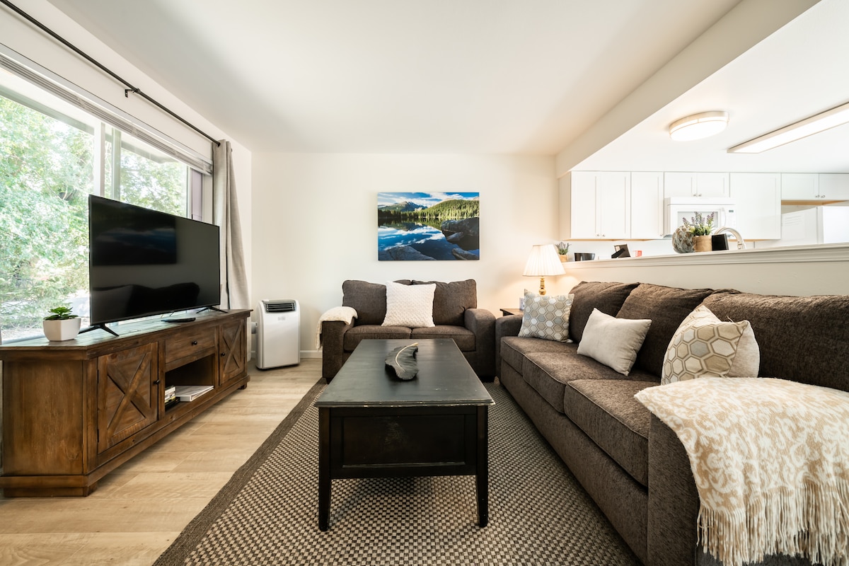 Relájate en el concepto abierto de nuestro apartamento céntrico con vistas a la montaña. Cerca del centro de la ciudad y del Colorado College. ¡El Centro de Entrenamiento Olímpico también está a menos de 1,5 millas de distancia! Da un paseo matutino a una cafetería cercana y disfruta de la paz y tranquilidad de nuestro barrio. Tendrás el alojamiento solo para ti, una cocina completa, una lavadora y secadora, aperitivos, abundantes artículos de aseo y mucho más. ¡Esperamos que disfrutes de tu visita a Colorado Springs!