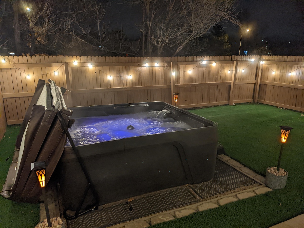 Ubicado de✔ manera atractiva en el lado este, en un barrio acogedor cerca de parques, restaurantes, tiendas y supermercados. ✔A poca distancia a pie del campo de Vibes (equipo local de béisbol COS) ✔A poca distancia en auto de Pikes Peak, USAFA, Fort Carson, Fort Peterson, UCCS, Aeropuerto COS Patio ✔privado con jacuzzi Entrada ✔privada y sin llave ✔Aire acondicionado Televisores Roku de✔ 70" y 42" en la sala de estar y el dormitorio ✔Lavadora y secadora Cocina ✔completa: Keurig, horno y estufa, microondas, lavavajillas, tostadora, etc. Número de permiso para estadías de corta duración: A-STRP-23-0389