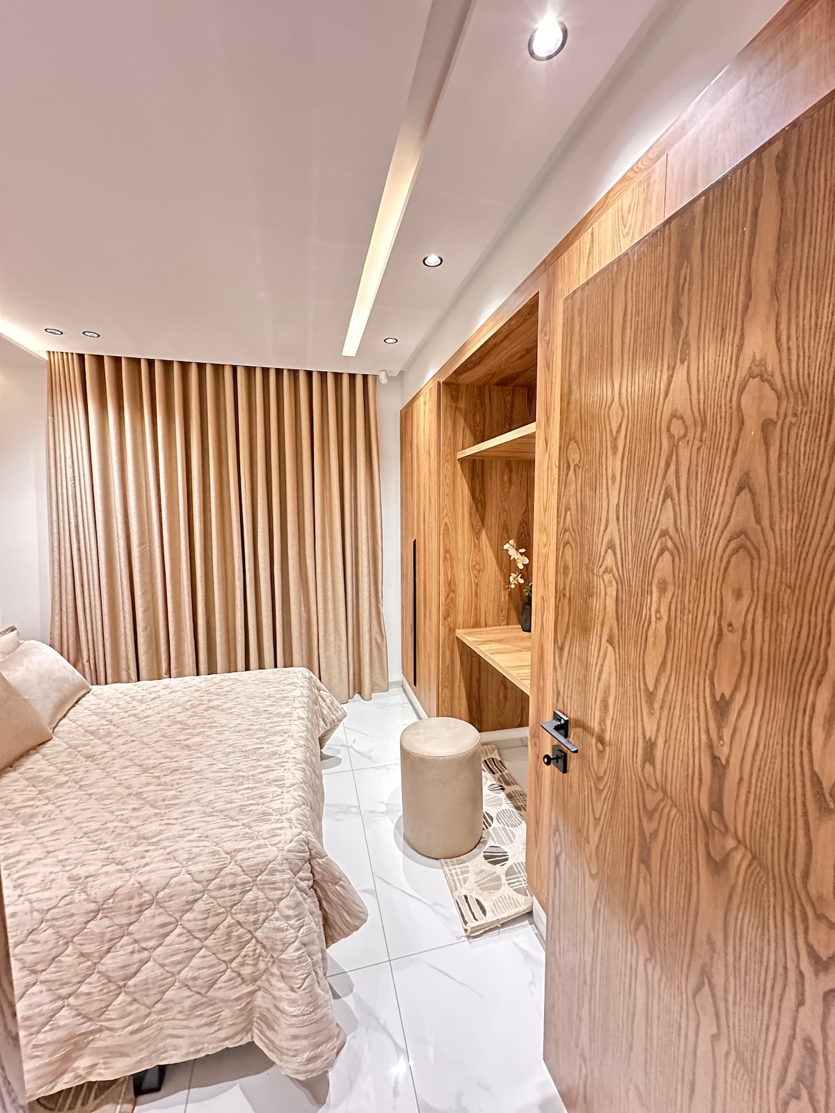 Apartamento totalmente reformado, moderno y luminoso, ideal para una pareja o una pequeña familia. Todo es nuevo y está decorado con cuidado: sala de estar acogedora, dormitorio agradable, cocina equipada y baño impecable. Situado en el corazón de Ennaser, barrio céntrico, animado y seguro, a 5 km del centro de la ciudad de Túnez y a solo 3 km del aeropuerto. Wi-Fi rápido, aire acondicionado y sistema de alarma garantizan comodidad y seguridad óptima.