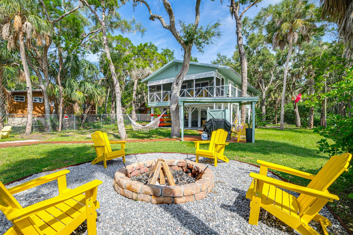 28/10/25: ¡nuestra bañera de hidromasaje ya está abierta para la temporada! ¡Ven a la aventura con nosotros fuera de los caminos más transitados! Nuestra propiedad es para huéspedes mayores de 18 años. Recorre salvaje y libre en nuestros 5 acres de bosque mágico escondido en medio del condado de Citrus, ¡lo que lo convierte en un lugar perfecto y céntrico para senderos para bicicletas Crystal River, Rainbow River e Inverness! Disfrutarás de vistas boscosas con muchos robles viejos encantadores y la nostalgia de la Vieja Florida de estar rodeado de naturaleza. Acurrúcate junto a un acogedor fuego por la noche, relájate y descansa.