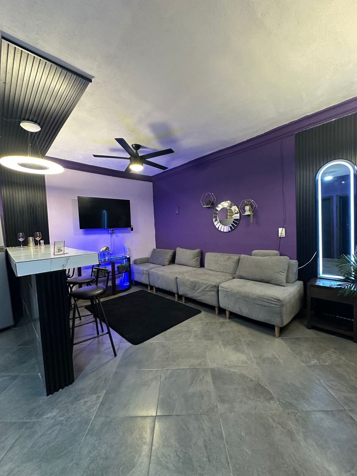 Convenientemente ubicado cerca de la zona industrial, la presidencia municipal, un cine y una plaza comercial. Ofrece un ambiente cómodo y totalmente privado, con cajón de estacionamiento techado. Cuenta con baño con agua caliente, pequeño comedor, frigobar, microondas, Smart TV de 50”, WiFi de 60 Mbps, cama Queen size e individual, sofá, toallas y aire acondicionado de dos tiempos. A pocos metros hay una tienda de conveniencia. contamos con precios corporativos con opción de facturación.