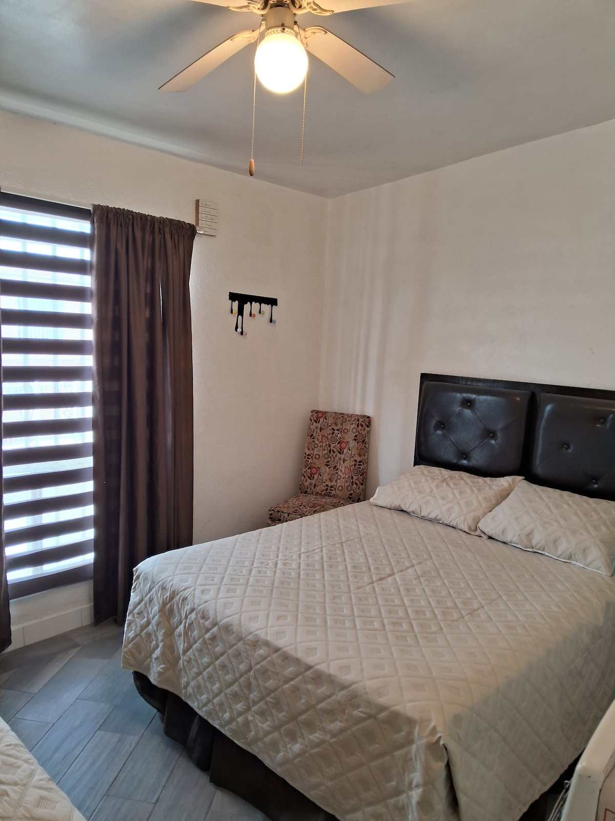 Espacio 5☆ remodelado con todo lo nuevo/básico para un alojamiento tranquilo, seguro y céntrico. Tiene una excelente ubicación que te permite llegar en pocos minutos (auto) a varios puntos importantes de la ciudad, como: 3 min. de USA (puente libre Int), 15 min. del Consulado Americano, 4 min. de la UACJ y Centro Médico de Especialidades. Cuenta con entrada autónoma, y cámaras de seguridad en la propiedad. Cuenta con una cama queen y un sofá cama, TV inteligente con Internet y cuenta de Netflix.
