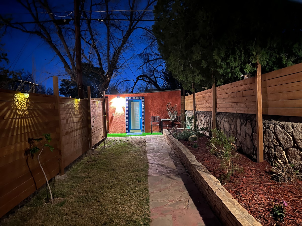 Una casa de huéspedes bonita, pintoresca, cómoda y limpia, a menos de 10 minutos del Aeropuerto Internacional de El Paso, Ft. Base del Ejército de Bliss, UTEP y TTHSC, el centro de la ciudad: arte y cultura, el Palacio de Justicia del Condado de El Paso, el hogar de los Chihuahuas de El Paso, tiendas y mucho más. Para los amantes de las actividades al aire libre, encontrarás excelentes rutas de senderismo y algunas de las mejores escaladas. Y si buscas excelentes comidas locales, ¡encontrarás algunos de los mejores restaurantes mexicanos de la ciudad a pocos minutos de distancia!