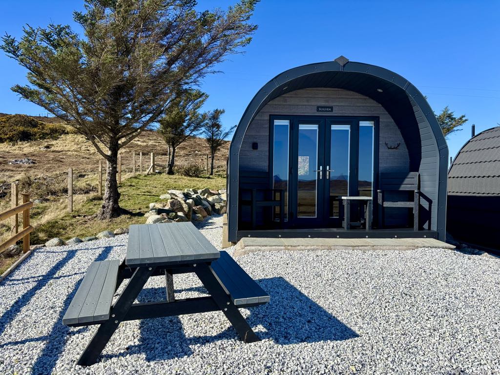 Suilven View es una cápsula de nueva construcción, establecida en 2018. La cápsula está enclavada en una ladera, situada en Baddidarrach. La cápsula Suilven View se encuentra en una colina ligeramente elevada, con vistas a Lochinver. Hay un baño privado, sala de estar/cocina de espacio abierto, balcón y excelentes vistas de Suilven, una de nuestras impresionantes montañas de forma única. La propiedad es única, encantadora, cómoda y bien cuidada. La cápsula tiene 21 metros cuadrados o 7 metros por 3,5 metros de tamaño. La altura del techo es de 8 a 9 pies.