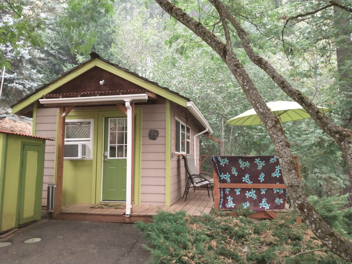 ¡Glamping en su máxima expresión! Esta adorable, cálida y acogedora, artística y verdaderamente única cabaña de cuento de hadas está ubicada en un entorno tranquilo y cercano a una granja (pero a solo 30 minutos del centro de Portland). ¡Te encantará el ambiente mágico, las obras de arte, la decoración, la iluminación, la barra de café, la cómoda cama, la bonita letrina con lavabo de agua fría y una ducha privada al aire libre con calefacción! Damos la bienvenida a TODOS los colores, LGBTQ y amigos del tabaco al aire libre. Se permite la flor de cannabis en el interior en un cobertizo de TV/juegos separado, divertido y funky. ¡Te ENCANTARÁ!
