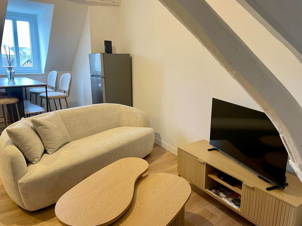 Magnífico estudio de 33 m2 en el centro de la ciudad. 7 días o más -20% 28 días o más -30% - Totalmente renovado, muy luminoso, luces que atraviesan y alojamiento sobre equipado. -Desayuno incluido para su primera noche. - Cama paraguas 👶🏻 -Netflix -Internet de fibra -Situado en una calle tranquila, de un solo sentido, pegada al centro de la ciudad, así como al castillo. -Calle con estacionamiento de pago y estacionamiento del castillo a 100 m de forma gratuita. -A pie: A 2 minutos del castillo y el centro de la ciudad. 10mins de la estación de tren