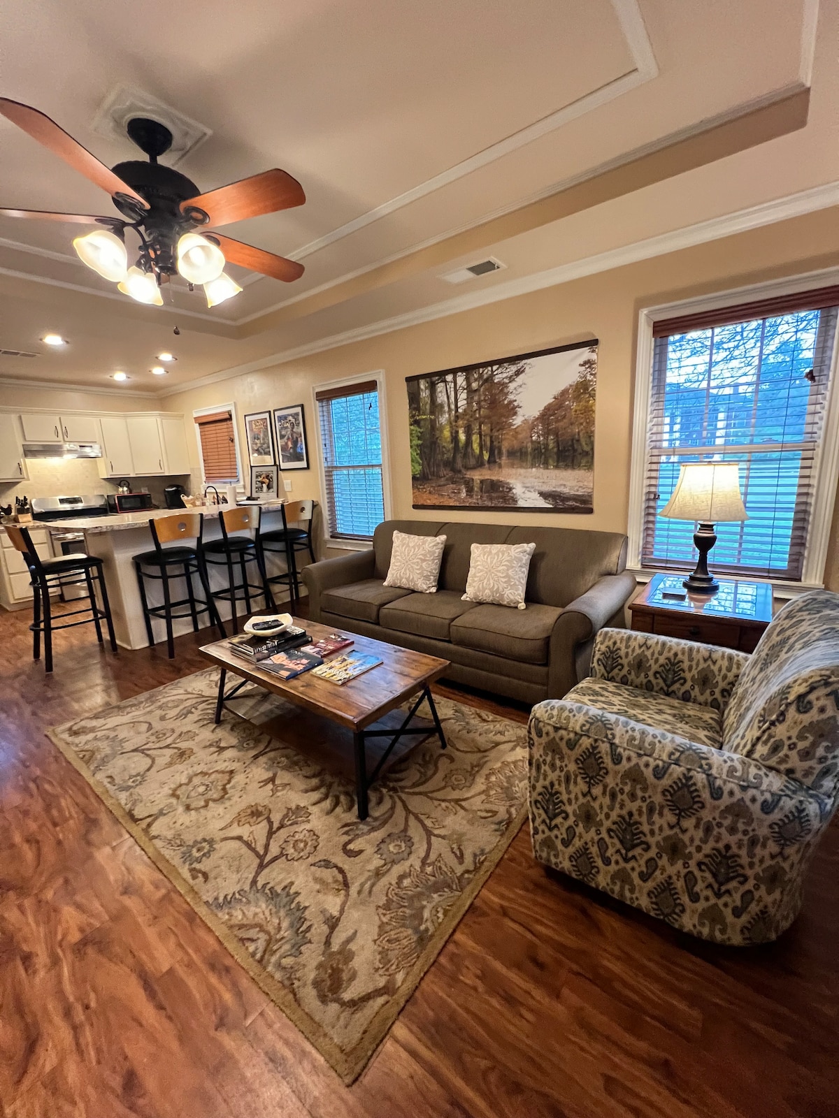 ¡Te damos la bienvenida a The Gallery! Esta casa de campo de un dormitorio se encuentra detrás de la casa principal. Recientemente se renovó, pero está decorado con muebles vintage para la personalidad. La cabaña está equipada con cocina completa, dormitorio, baño, lavadora y secadora, y Roku TV. Tu estancia será única, ya que la decoración ha sido seleccionada de la guarida de mi coleccionista, y lo mejor es que todo está a la venta. La Galería es una sala de exposición de objetos de colección, por lo que, al contrario del refrán, ¡PUEDES llevarla contigo!
