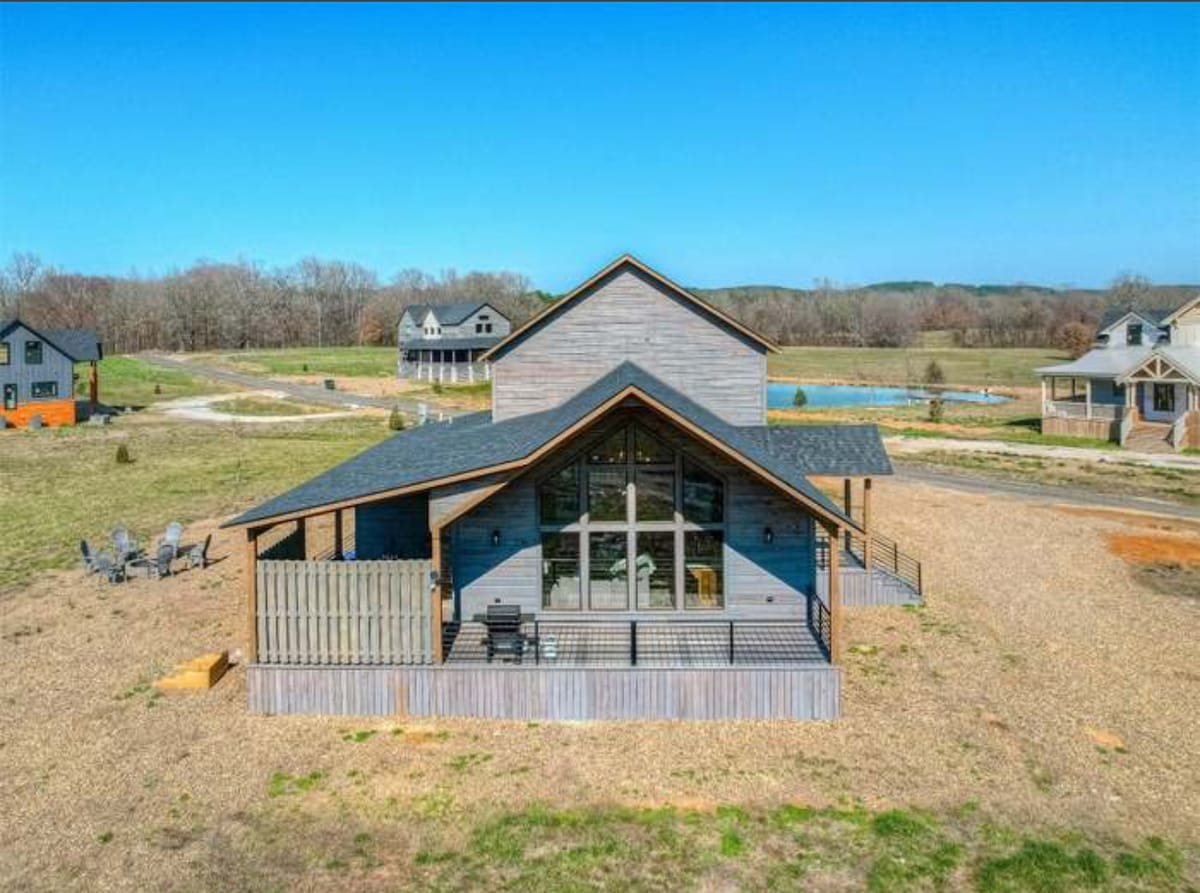¡Disfruta del hermoso lago privado de 30 acres dentro de Bear Mountain Ranch en las colinas del este de OK! Pasa tiempo en el agua, ve a algunos de los únicos alces en Eastern OK y contempla el cielo nocturno lleno de estrellas en esta escapada aislada. Nuestra casa estilo rancho de 5 habitaciones y 5 baños de aproximadamente 2300 pies cuadrados tiene un porche enorme: atractivo rústico con comodidades modernas.La cocina y los baños de tamaño completo cuentan con encimeras de mármol. Cada dormitorio tiene un baño privado. Se permite el acceso al muelle y al cobertizo para botes, excepto en fechas seleccionadas. Envía un mensaje para obtener más información.