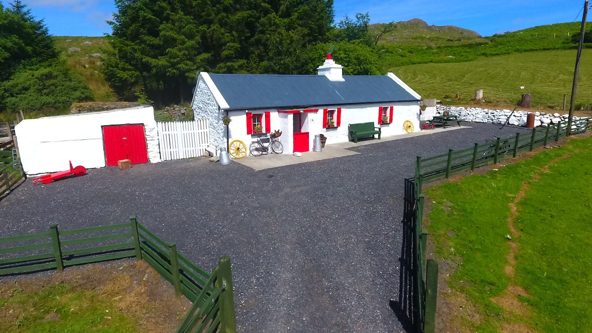 Encantadora casa de campo independiente de un dormitorio situada en el paisaje de postal de las montañas Ox. En lo profundo de las colinas y los tranquilos alrededores, podrás disfrutar de encantadoras rutas de senderismo, ideales para unas vacaciones relajantes o enérgicas en el campo en el sur de Sligo. Una escapada perfecta de las distracciones modernas, ideal para parejas o familias que quieran disfrutar de la vida en el campo. Esta casa de campo familiar de piedra del siglo XVIII se encuentra en una granja en funcionamiento. La tranquilidad en todo su esplendor.