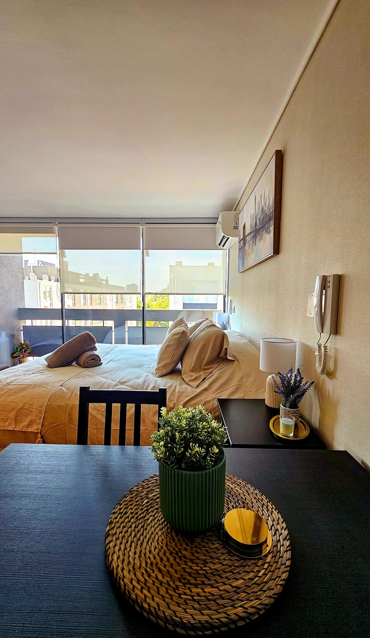 Amplio y luminoso departamento en el corazón de Santiago 🌆. Ideal para viajeros que buscan comodidad, independencia y una gran vista a la ciudad. Con diseño cálido y funcional, ofrece Wi-Fi rápido, Smart TV, cocina equipada y espacios acogedores. Ubicado cerca del metro, cafés, museos y los principales atractivos turísticos, es el punto perfecto para disfrutar Santiago a pie y descansar con todo el confort.