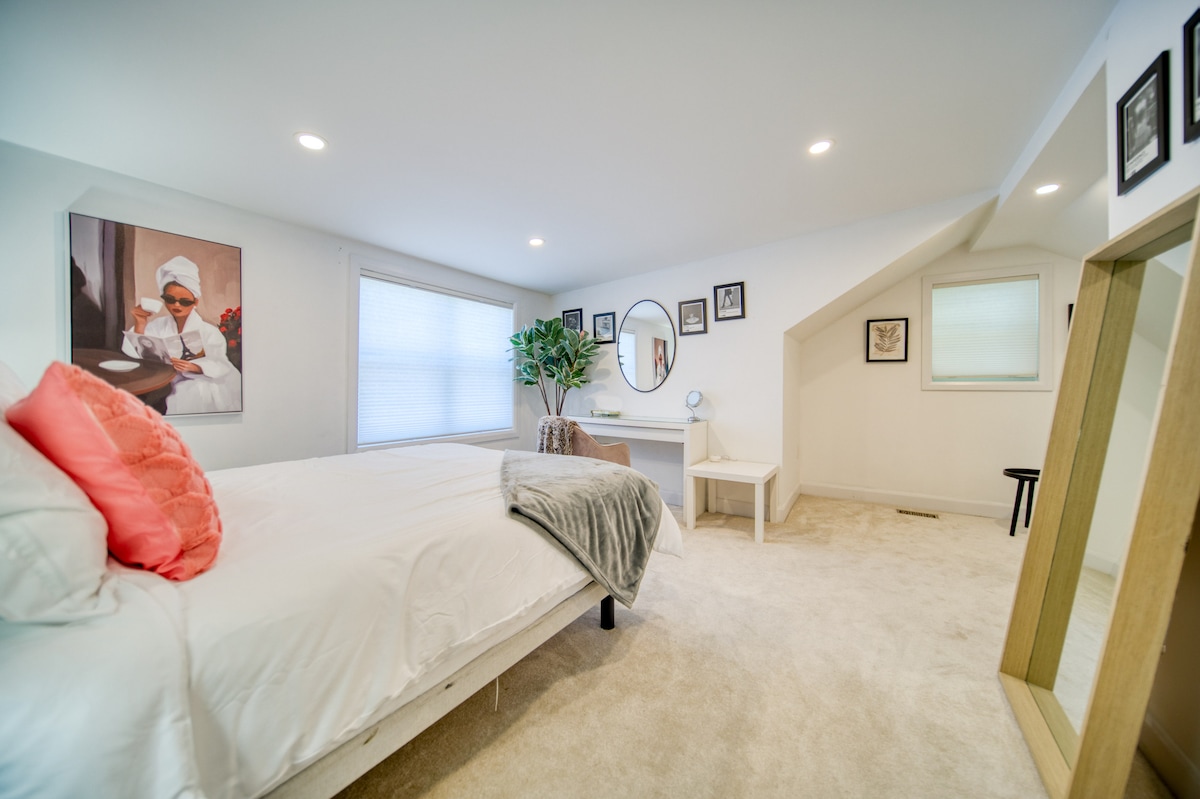 Modernizado renovado 680 pies cuadrados. Apartamento en el sótano, luminoso. Los techos inusualmente altos con aislamiento "seguro y sólido" entre el espacio de los propietarios y el apartamento proporcionan un excelente sonido desconcertante. Cocina bien equipada con Nevera Lg, microondas, D/W, cocina de 4 quemadores (eléctrica). Entrada lateral digital (compartida), 8 escaleras anchas hacia abajo y pasillo corto a la entrada con llave en el apartamento de uso exclusivo para huéspedes. Lavandería común (compartida con el propietario disponible justo fuera de la puerta del apartamento con nuevas máquinas LG de carga frontal.
