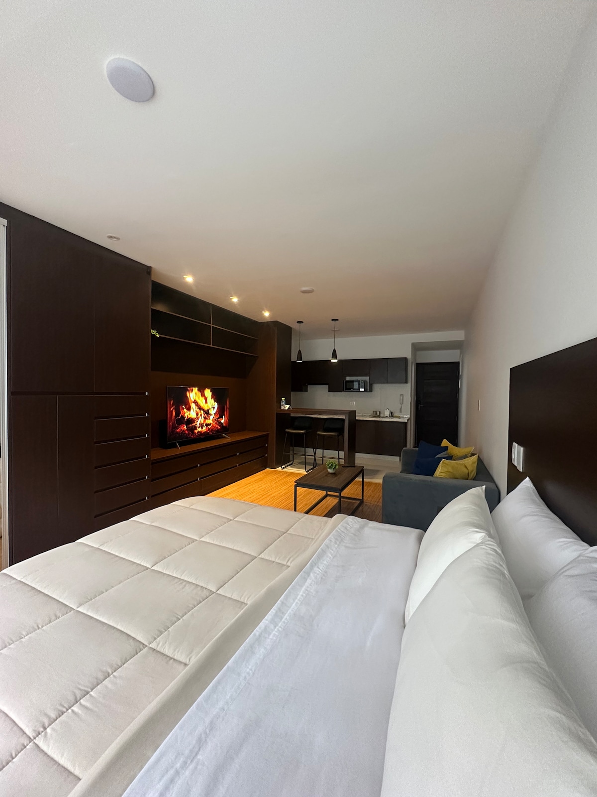 Ten una experiencia única y relajante en este espacio lujoso, tranquilo y elegante, con un balcon con vista al mejor parque de la ciudad, con ambientes diseñados para tu disfrute y comodidad, checkin independiente y parqueo gratuito en las instalaciones. Ubicación privilegiada con acceso a bancos, shopping, supermercados, ciclovía, restaurantes con deliciosa comida y acogedoras cafeterías. Pasear por el parque llenaran tus días de calma y te dará maravillosos momentos de relajación.