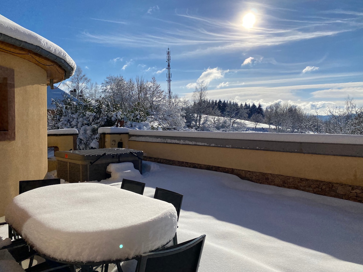 Venga a disfrutar de la tranquilidad y el aire puro de la montaña en nuestra antigua granja que data de 1906. Situado a 650 metros sobre el nivel del mar, con vistas al valle, disfrutará de una vista panorámica excepcional sin vecinos de todo el valle de plata. Hermosas caminatas desde la granja, excelente agua de manantial, animales salvajes, así como un jardín privado y todas las comodidades modernas en el apartamento Se admiten mascotas bajo ciertas condiciones (ver otra información a tener en cuenta)