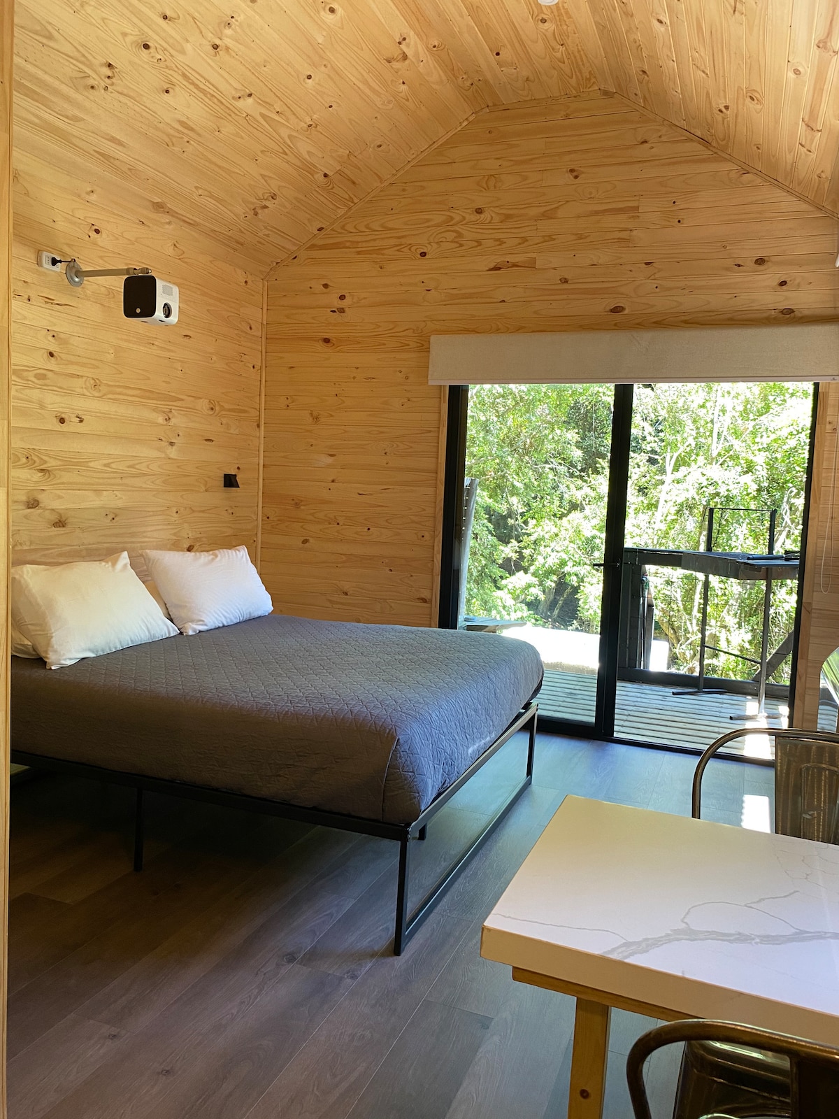 Cómoda cabaña para disfrutar en familia, cuenta con un equipamiento que cubre las necesidades básicas para una grata estadía. cuenta con TV Smart, wifi, utensilios de cocina, ropa de camas, sabanas etc. Desconecta de tus preocupaciones en este espacio amplio y sereno. la tinaja no está incluida en el valor del alojamiento, es individual para su cabaña, si desea hacer uso de la tinaja se debe cancelar un valor adicional.