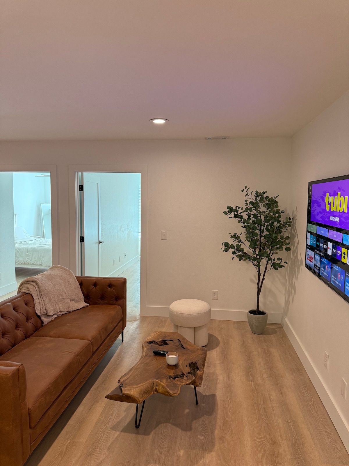 Esta hermosa suite está en una ubicación privilegiada en el centro de la ciudad, a poca distancia a pie de bares, restaurantes, Cops and Doughnuts, tiendas, senderos, parques y el cine. Esta unidad es perfecta para un pequeño grupo de amigos que buscan explorar Mid Michigan. Cuenta con dos camas tamaño queen, una silla de cuero, un sofá cama, una cocina, un pequeño bar y un baño con ducha y bañera con patas para un baño relajante. Estamos a 17 minutos del casino y de CMU.