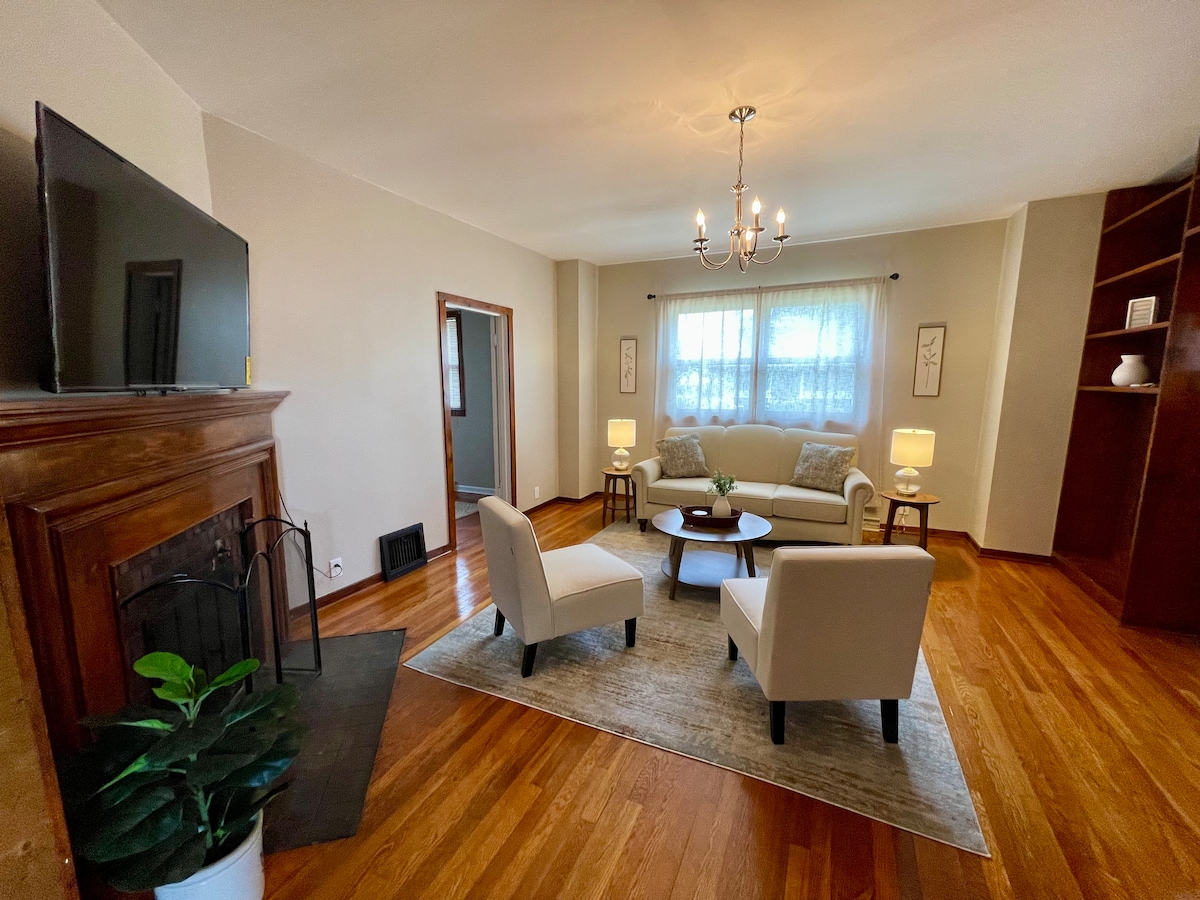 Diviértete con toda la familia o varias familias en esta casa elegante recién renovada ubicada a menos de una cuadra de las instalaciones deportivas de Eastern Illinois. Alójate aquí y camina a eventos. Cerca de muchos restaurantes. Amplia cocina completa con isla, sala de estar, tres baños, una sala de juegos y oficina/estudio. Vallado en el patio trasero por privacidad. Hay un lugar para todos. La sala de juegos cuenta con juegos de mesa, juegos de cartas y mesa de futbolín, incluida una gran conexión de pared. 4. Todas las habitaciones tienen un SMART TV de 32 pulgadas.