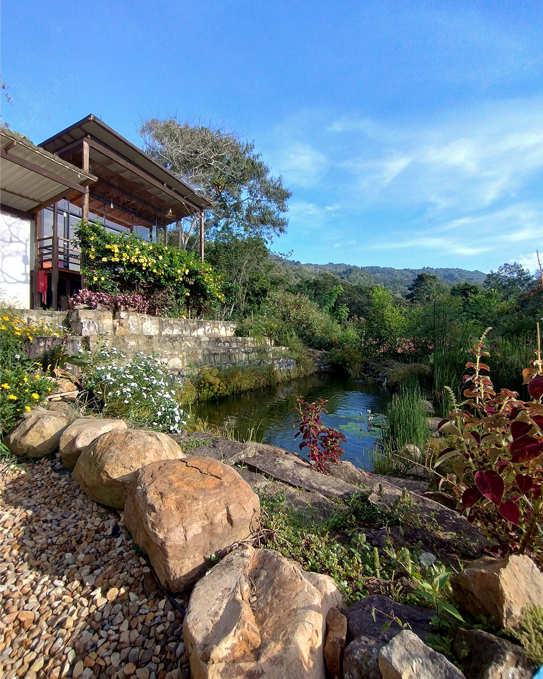 Casa cuidadosamente diseñada para captar la hermosura de su entorno natural, compuesto por árboles; gran variedad de aves; mariposas; grillos; luciérnagas y otros organismos que hacen parte del ecosistema. Todo lo anterior con la majestuosa cordillera de Los Andes como telón de fondo. Este proyecto busca alcanzar la auto sustentabilidad a través de la integración de huertos orgánicos, recolección de aguas lluvia; un pequeño lago artificial; un gallinero y compostaje de desperdicios orgánicos.