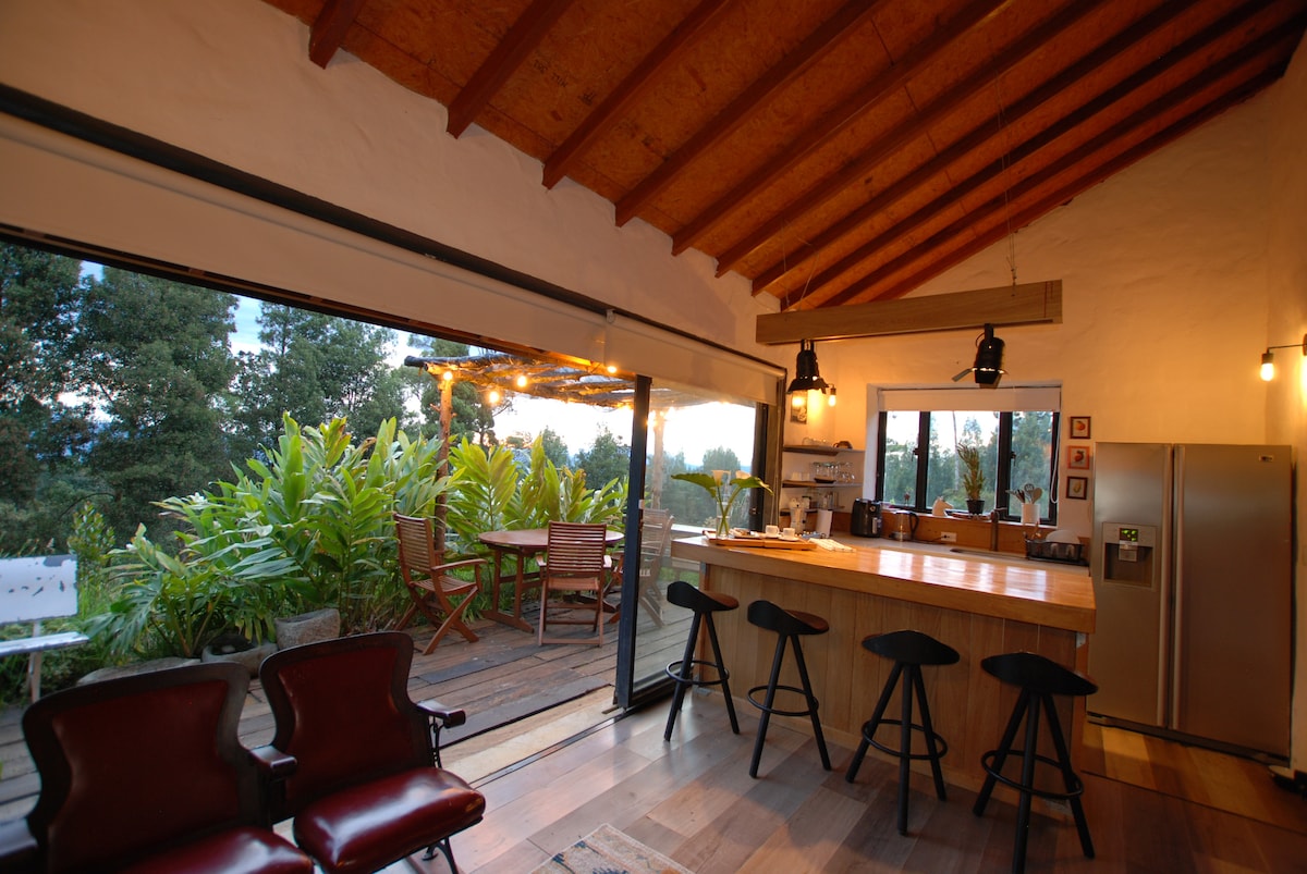 Cabaña ubicada en las montañas del Resguardo Indígena de Chía, Cund. Conexión con la naturaleza, vista al municipio y a las montañas, ideal para desconectarse de la ciudad y tener un momento de tranquilidad. Cerca de Bogotá, a 15min del centro de Chía y 10min de Andrés Carne de Res, llegada de fácil acceso. Cerca hay lugares para montar en bicicleta o caminar al cerro de la valvanera. Se puede llegar en transporte público, uber o taxi sin problema, toda la vía está pavimentada.