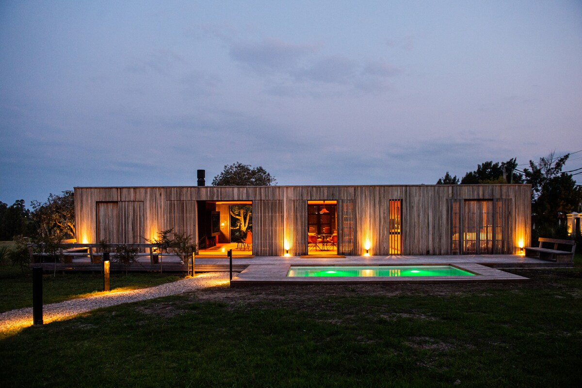 Un espacio único en medio de la nada. En el pueblo de Riachuelo, a solo 12 km de la ciudad de Colonia del Sacramento. 40m² de confort con todo lo necesario para un descanso absoluto en un predio de 5 hectáreas. Playita frente al arroyo donde si quieres puede nadar, pescar y si traes un kayak disfrutar el lugar a pleno. Pesca recreativa. Parrilla. Avistaje de pájaros. Piscina.