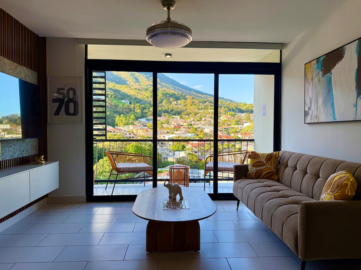 Despierta con vistas al volcan y luego aprecia la ciudad desde la terraza. Este apartamento cuenta con las mejores vistas de la ciudad y en una zona centrica de la cápital. Esta muy bien equipado con todo lo necesario para una estadía placentera. Con Wifi rápido, Smart TV ,agua caliente, aire acondicionado, cocina con todo lo indispensable. Piscina, gym, rooftop y más. Muy bien ubicado, a menos de 5 minutos de los centros comerciales más grandes, restaurantes y bares. Zona segura y exclusiva