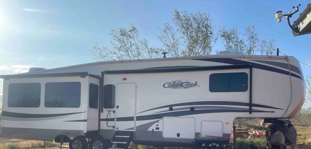 Peacehaven... una palabra compuesta que describe esta tranquila y céntrica autocaravana cerca de la pintoresca ciudad universitaria de Keene, TX. Esta autocaravana de treinta y cuatro pies viene totalmente equipada y tiene un dormitorio, un baño, con cocina y sala de estar combinadas. Es un lugar estupendo para una escapada de fin de semana o un retiro tranquilo de la vida urbana durante la semana. Peacehaven... tranquilo, cómodo y práctico.
